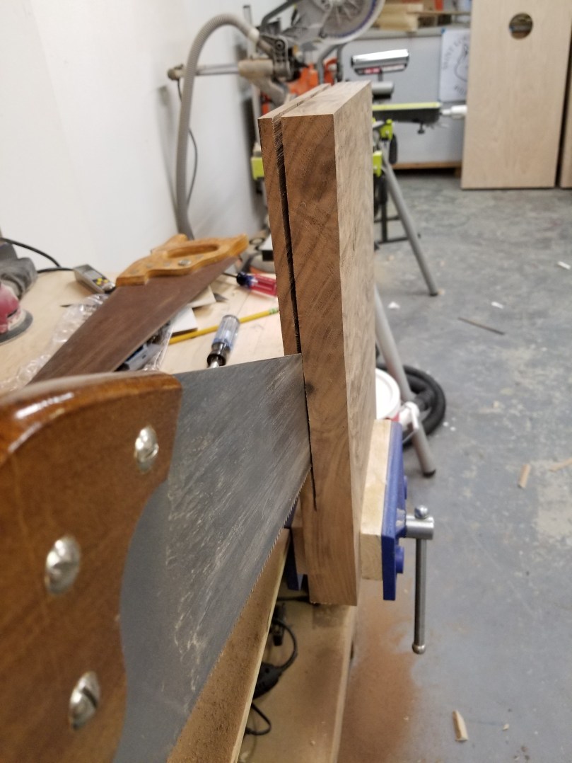 Slow and steady was the key to a straight rip. The saw I was using marketed itself as a rip cut and crosscut saw: that was not necessarily true. It’s definitely a crosscut saw, and this took forever. I upgraded to a cheap Japanese rip saw for the rest of it, and that went substantially better.