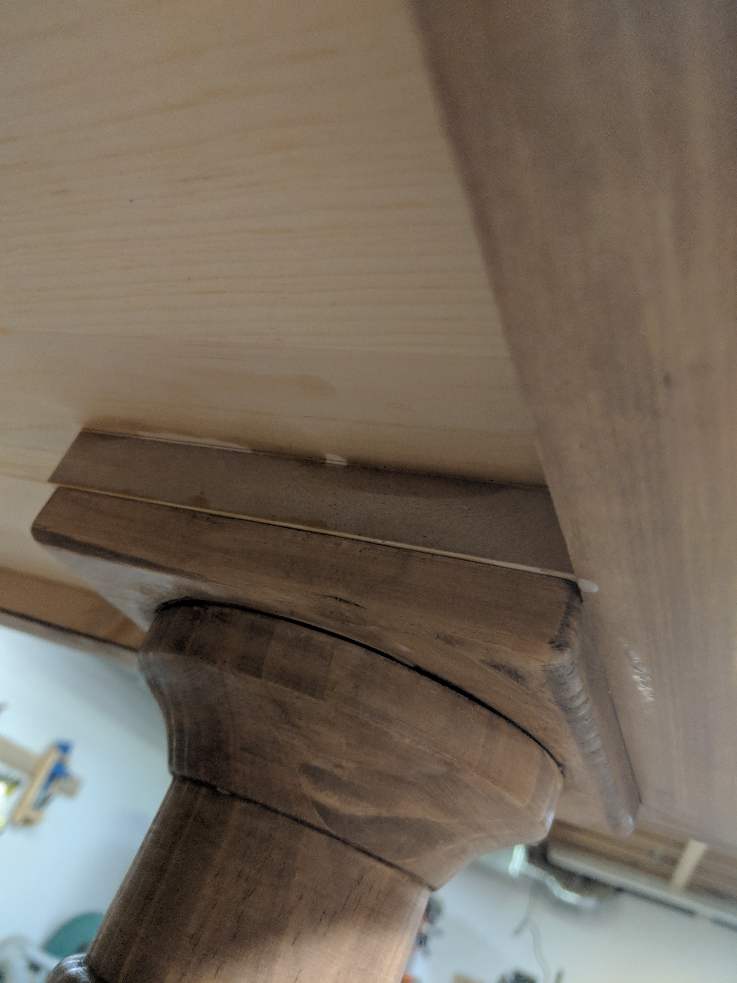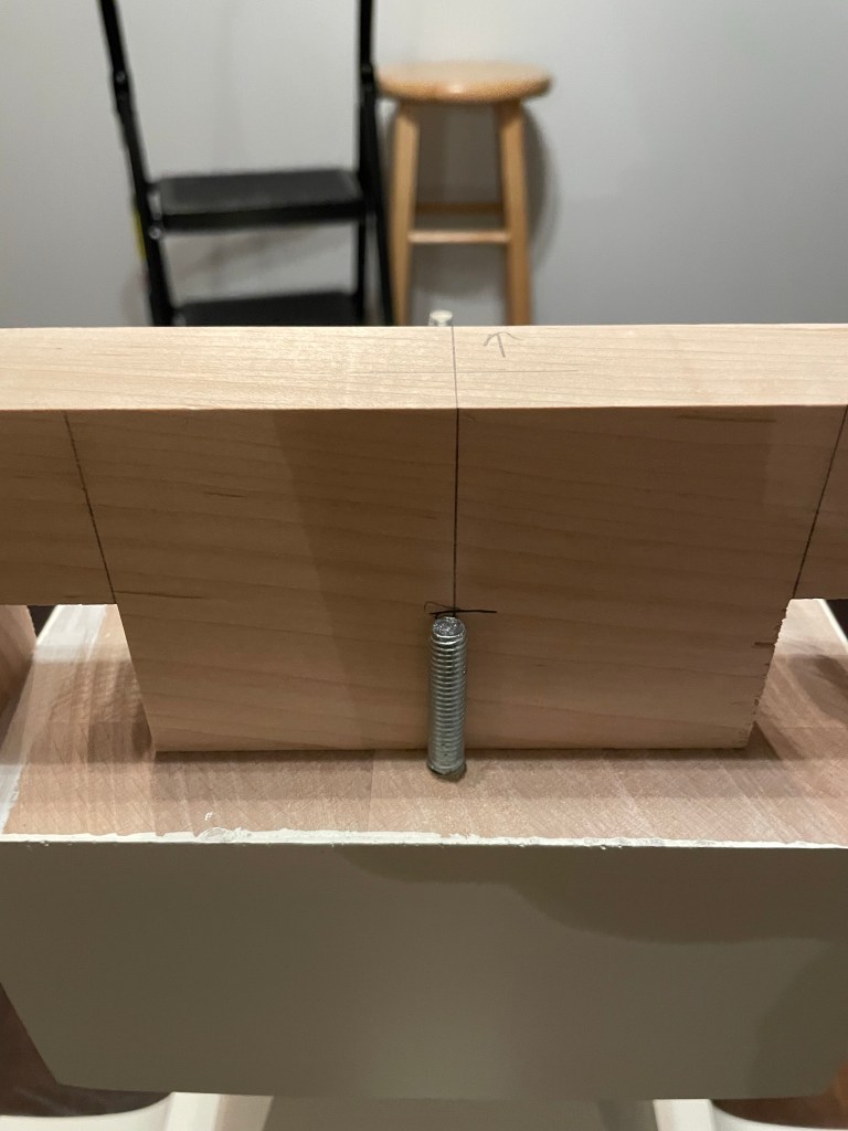 Attaching the top is easy, and something we’ve talked about many times. I like these skirt connectors from FastCap LLC. I use a router with a 3/4 inch straight bit to cut the recess in the top of the frame. Drill a small pilot hole and use a countersunk head screw to attach. Set the torque on your drill so that it snugs down the fastener but it can still be moved slightly by hand; this allows the top to expand and contract over time. Then, place the top on, center it, and attach with pan headed screws. Again, make sure the torque is not too tight.