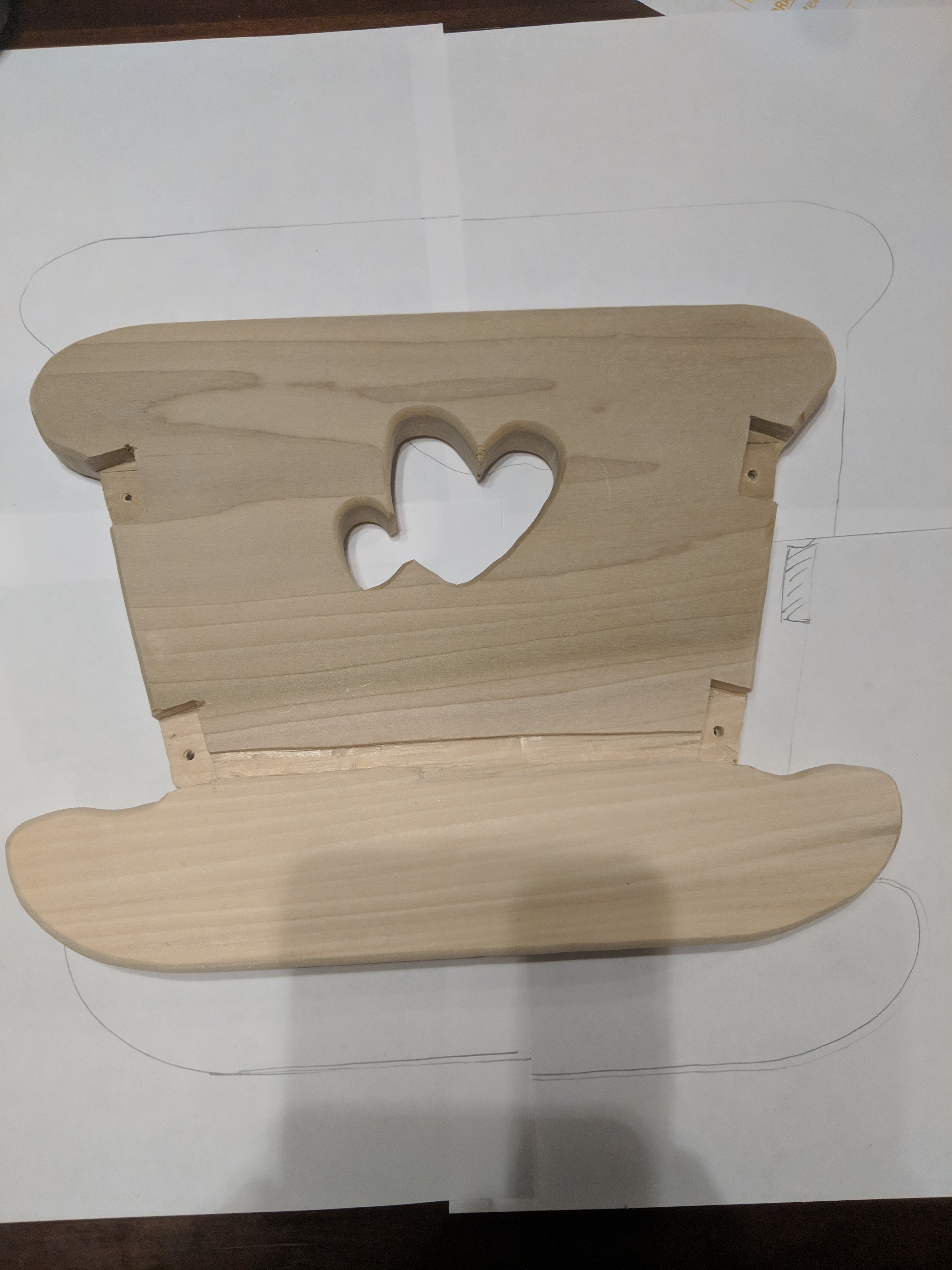 Dry fit all the pieces together and place it on the base; if everything fits well, mark out the bevel on the underside of the frame. I chose to have the bevel start right at the edge of the pedestal and extend to the end of the frame, leaving 1″ of thickness. Cut this using a bandsaw or jigsaw, and then clean up the edge with a block plane or sander to make it smooth.