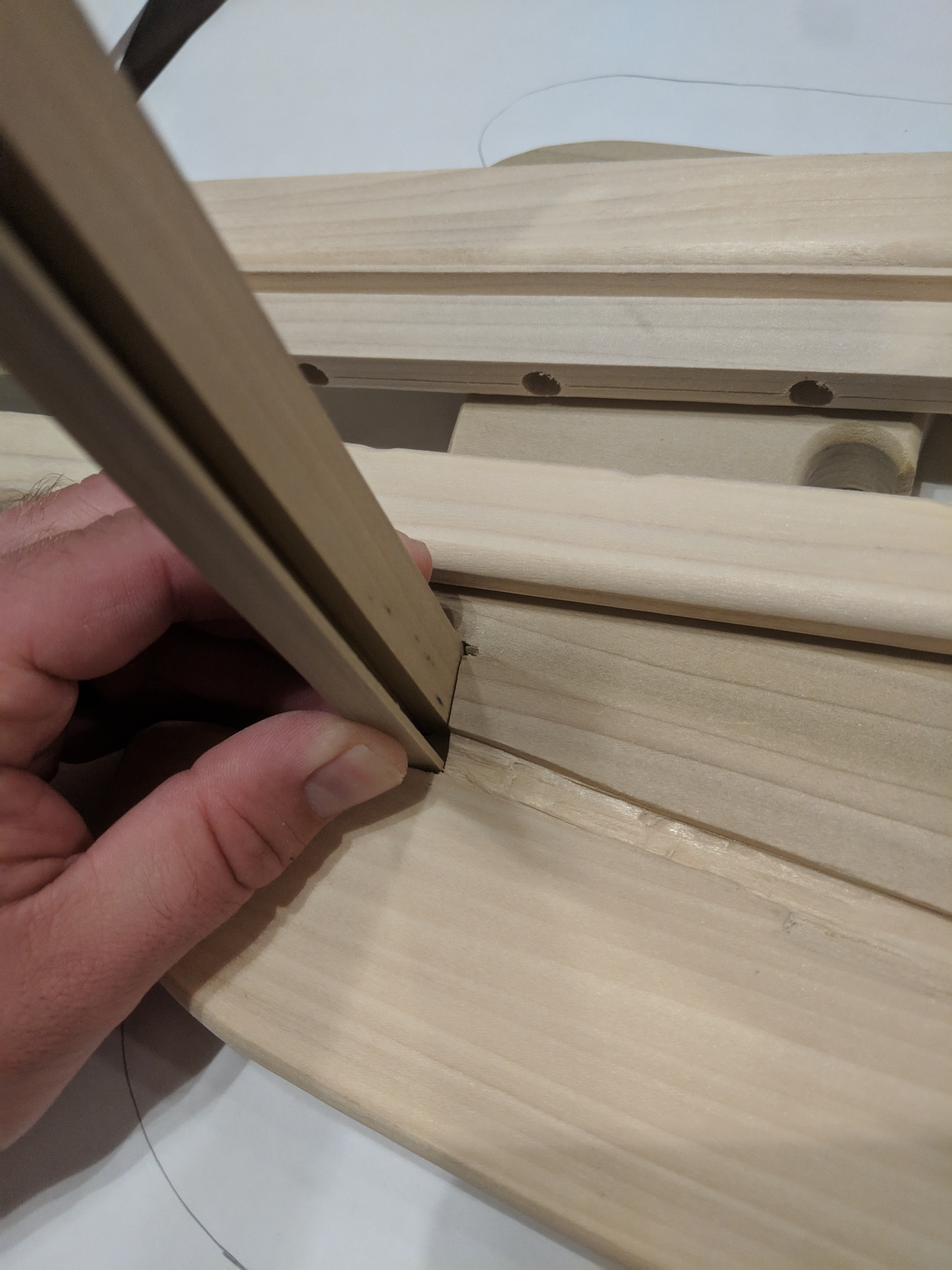 With the lap joints cut, assemble the overlaps together and mark which side of each board is the “top.” This way, you won’t accidentally cut your bevel on the wrong side.