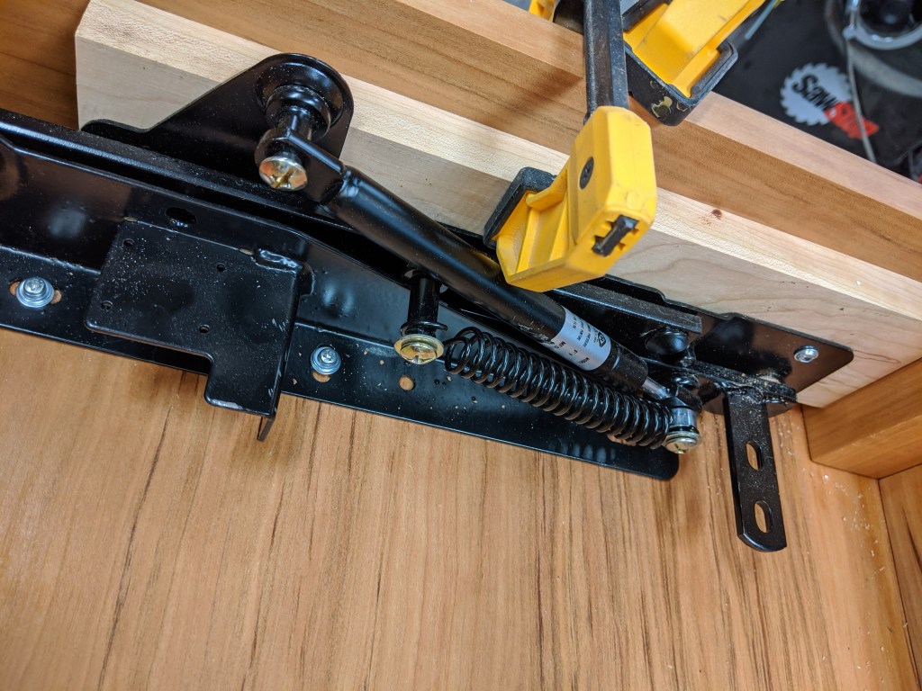 Bolting the base together is both extremely simple and unfortunately tedious. It’s a tight space, and you need patience. I find a low-profile ratcheting wrench with a very fine tooth count is the only practical way. Make sure you use a square to keep the legs plumb and align them with the bottom of the base. I also like to put these 3M furniture pads on the feet if the base is going directly on a hard surface.