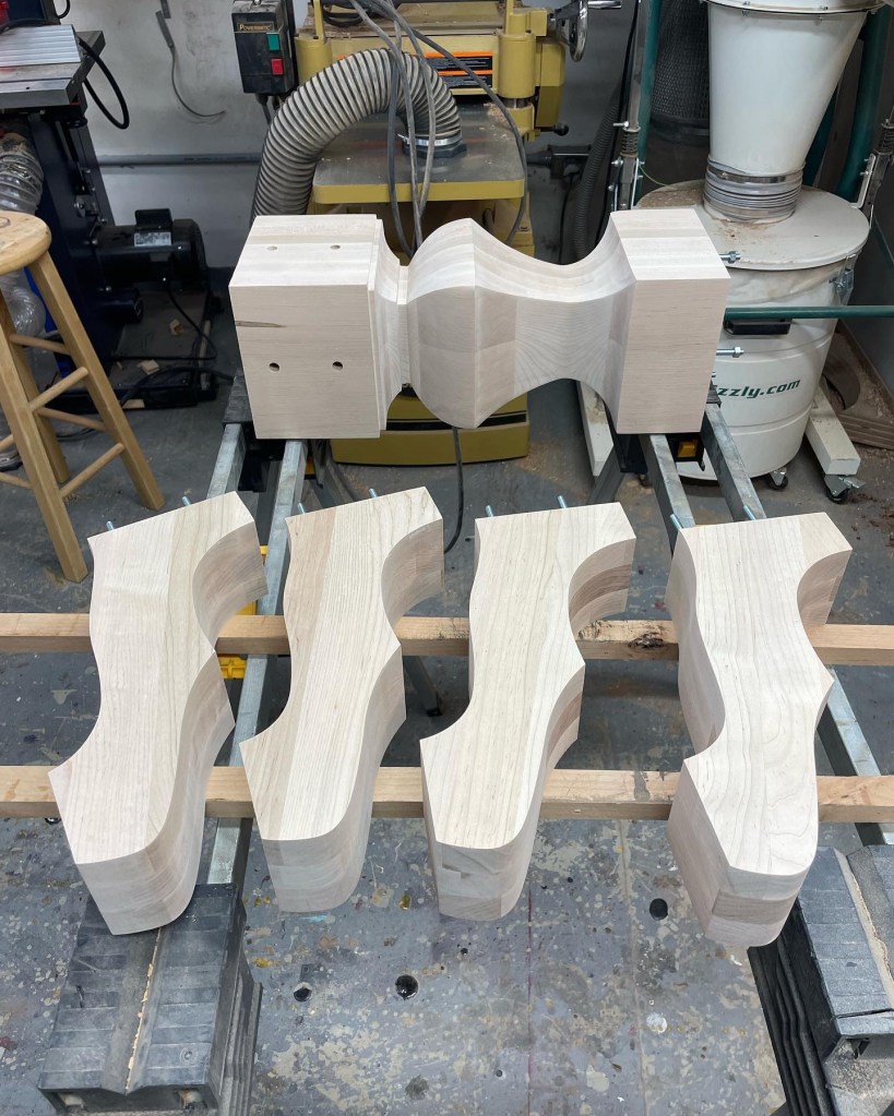 This single base is actually the same style as the double base I used in my dining table build, but with an extra leg where the stretcher would be. I have everything I would need to make these bases myself; bandsaw, lathe, spindle sanders, etc. So, why did I decide to get a pre-fab one?