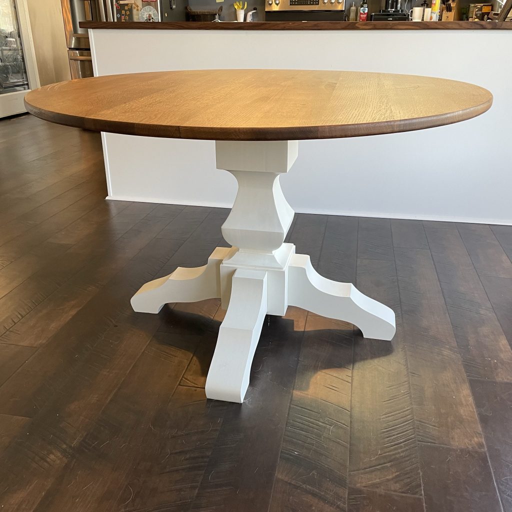 The first step was to apply the finish to the pedestal. Since I wanted to paint our base, I chose a soft maple pedestal. They offer them in different hardwoods as well.