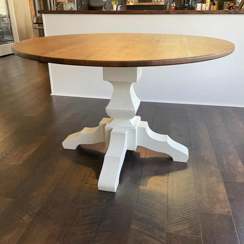In fact, I’m excited to finally share a step-by-step process on how to build a kitchen pedestal table using the Osborne Wood Products Transitional Style pedestal base. As before, Osborne graciously sent me the base in exchange for me writing this instructional post.