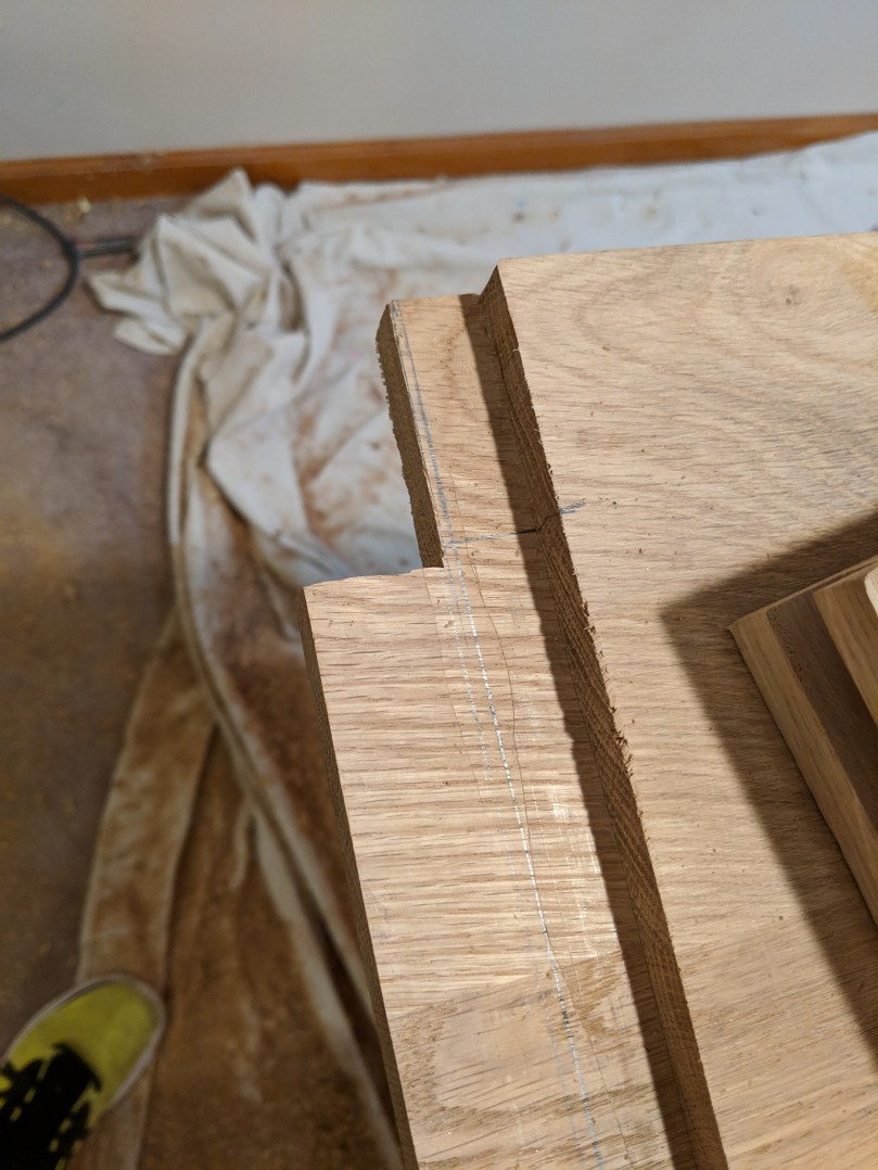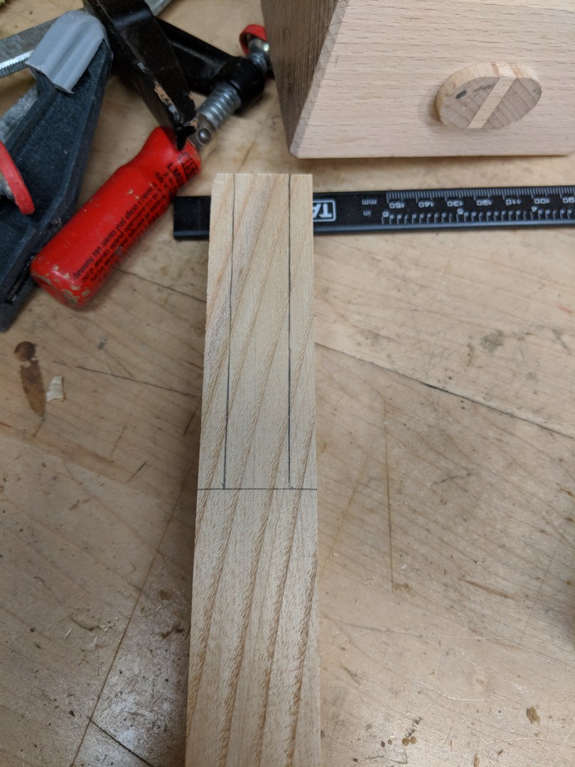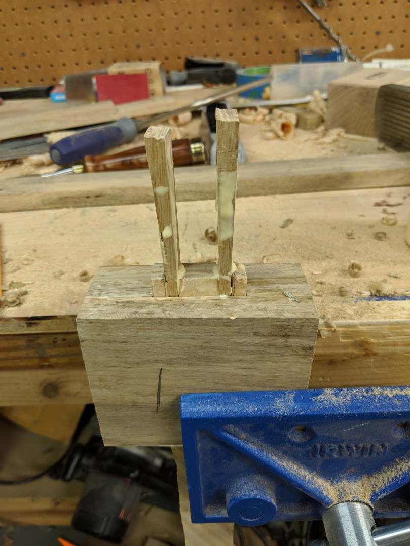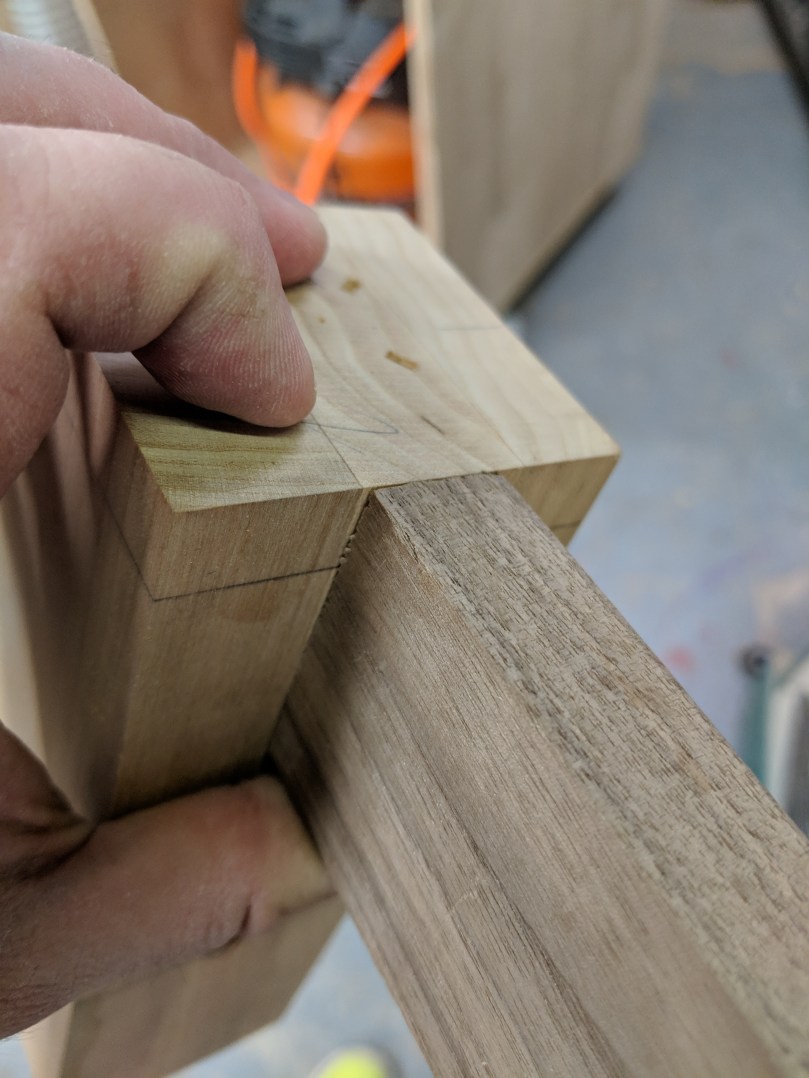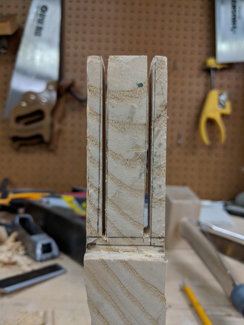 I’m gonna level with you; I’m not great at dovetails, at least not great enough to pretend I can instruct you how to do them. Here’s a video from Paul Sellers on how to make them. Here’s a link to an inexpensive dovetail saw. You can mark the dovetails using only a combination square, but a dovetail guide, marking wheel, and marking knife make this easier. I got all three as a kit from Woodcraft around Christmas for $25. The cut lines made by the knife and wheel help guide the saw blade.