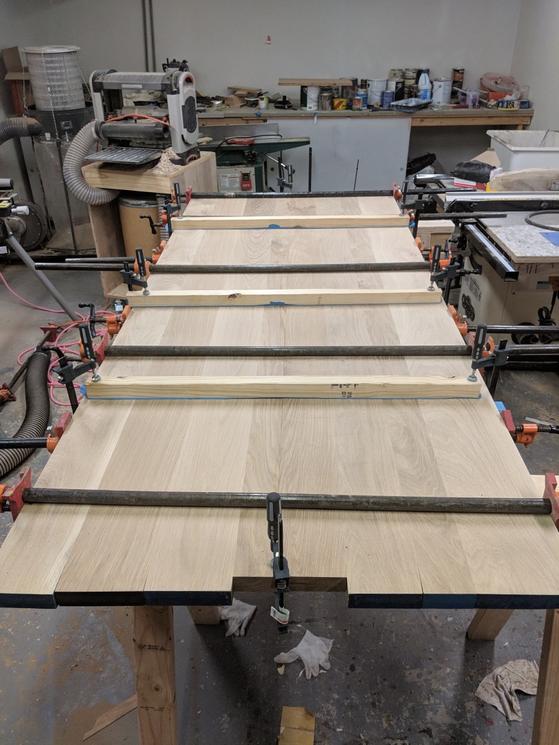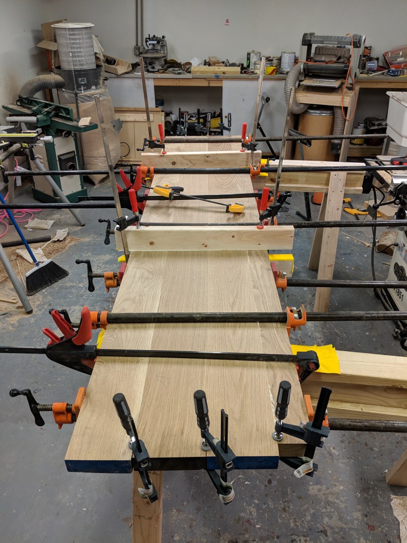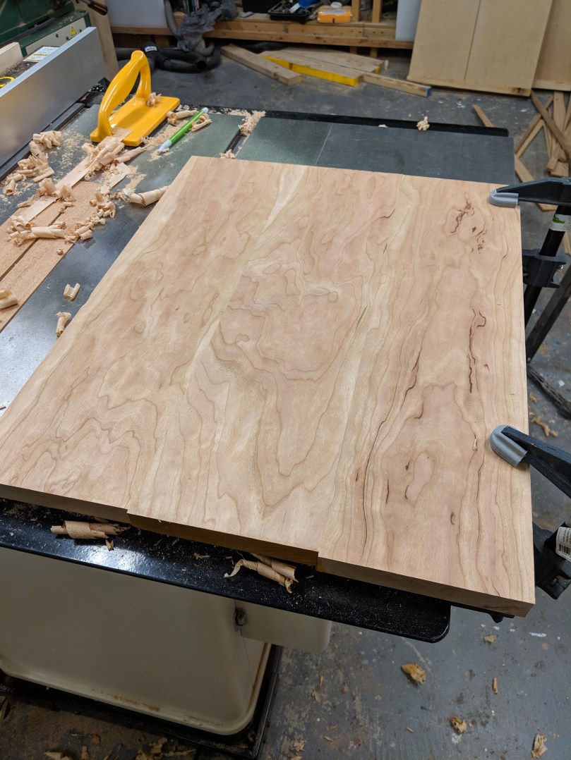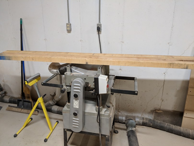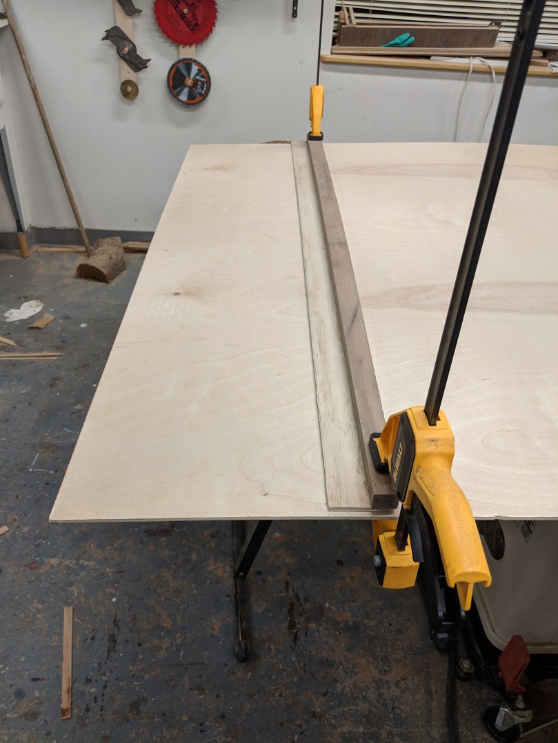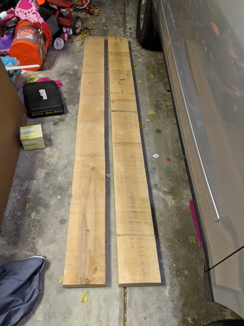 I’m going to cross-cut everything at least two inches longer than I need to account for more waste when I square everything up. Since we’re working off interior dimensions, add 1.5″ to that to account for the width of the sides (we’re shooting for about 3/4″ thick sides). Then add 2 inches to that to account for waste. This 12 ft board came up JUST short of doing the box on it’s own, if so make sure you buy more like 14 total feet. Coincidentally, 12.5″ is almost dead on the width we need for the top and bottom, so if you can get that width, do! If you can’t, you’ll need to edge glue two pieces together.