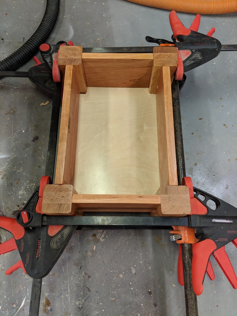 The screws used at the time would have been slotted, or “flat head” screws, since the Phillips head wasn’t invented until around the 1930s. While they COULD have been brass (as some use in their box construction) I find it unlikely, given the added expense, and whatever you find at your hardware store will likely be zinc coated. The only option I could find was Kennedy Hardware. They carry flat head, slotted, steel wood screws in a bunch of different lengths. Unfortunately, not in 1.75″ (when I was looking). So, I settled for 1.5″; will the reenactors forgive me? Too early to know. (Note: They have No. 12 screws in 1.75″, but those are almost 1/4 inch in diameter, which I was sure was far too large). Before you screw anything together, measure the diagonals. If they’re equal, all your corners are square.