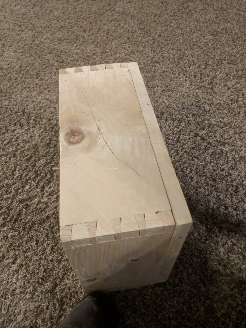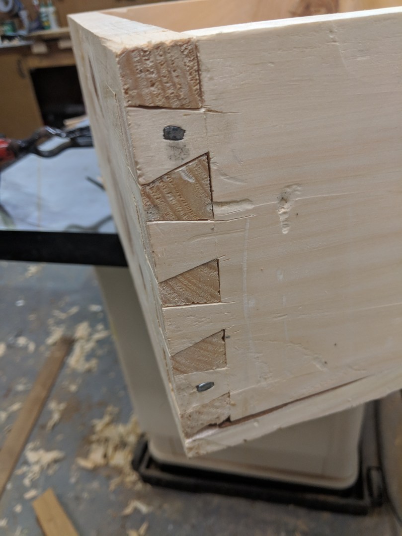 Some gaps on the dovetails, but just as strong. Once painted, you’ll never be able to tell.