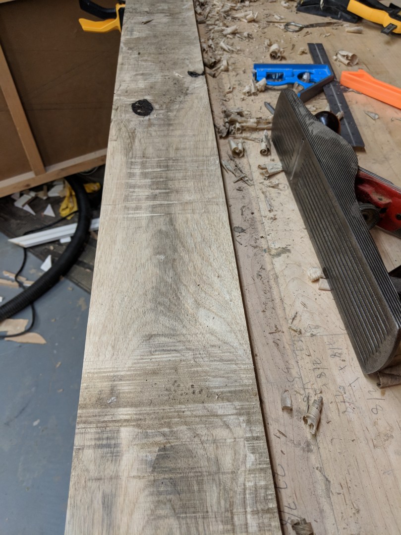 Now to begin planing! You can do this by hand, but I really just did enough to clean it up. I intend on taking it to the Woodworker’s guild shop and running it on a jointer and planer to true everything up.
