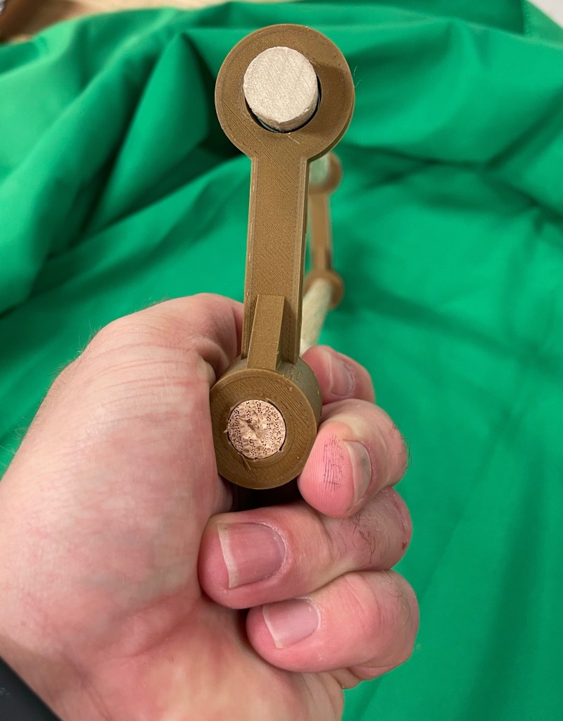 Repeat with top guide (oriented as seen below). You may choose to use a slow setting epoxy or CA glue to adhere the guides to the rod. I have found that the friction fit you can get with a properly sized rod prevents the need for this. Your mileage may vary. If you use a friction fit, you can easily replace the rod to switch between different lengths, whereas an epoxied set would be permanent.